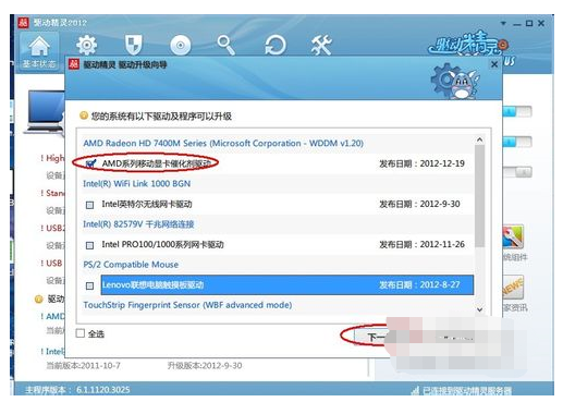 2、隨后在升級驅動向導頁面里,根據自己的需要,選擇相應的驅動,點擊下一步。