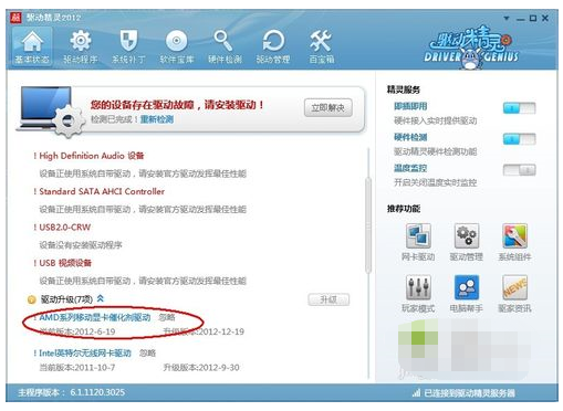 1、這里小編以驅動精靈軟件為例。首先打開驅動精靈,軟件會自動檢測系統的驅動。等待軟件檢測完成以后,在首頁找到顯卡,點擊升級。