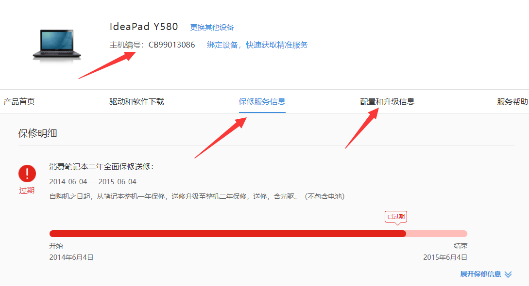 5、輸入后就可以查看到具體的配置詳情和查看到保修情況。