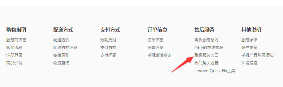 2、然后在電腦中打開瀏覽器,進入到聯想官網,下拉,找到聯想服務入口,點擊進入。