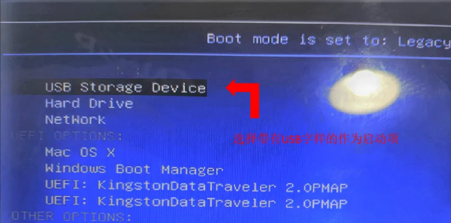3、插入U盤啟動盤到電腦上,重啟電腦,在電腦開機畫面出現時,迅速按下U盤啟動快捷鍵,進入優先啟動項設置頁面,選中U盤選項,按下回車 。
