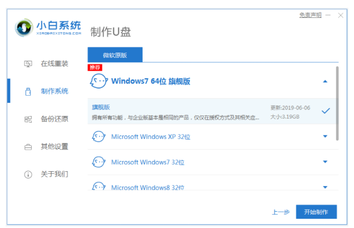 2、選擇我們需要安裝的windows操作系統,點擊開始制作。