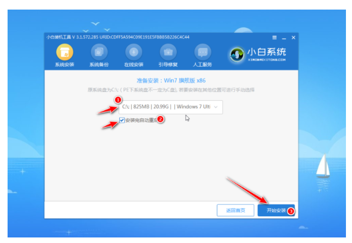 6、小編建議大家將系統安裝到系統盤c盤,點擊開始安裝。