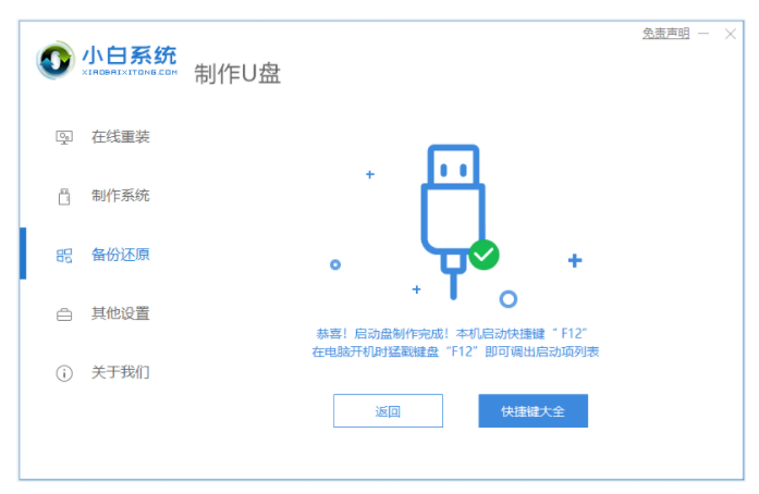 1、打開小白一鍵重裝系統工具,插入u盤,選擇u盤重裝系統模式,點擊開始制作。