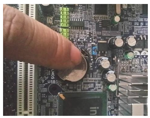 內存更換也不行,就是主板的問題了,這種情況也不復雜,給主板放電即可。我們可以在斷電后把主板上的紐扣電池取下,然后把電池旁邊的跳線帽(圖中藍色的就是)短接在二三針腳上,幾分鐘后電池上好,跳線帽復位,稍等一會兒再開機即可。