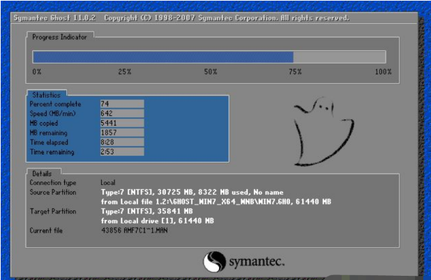 7、等待C盤格式化以及系統映像安裝到C盤的部署。