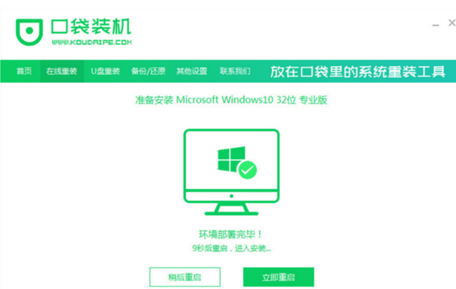 2、等待系統下載鏡像文件等資料,進行環境部署完畢后點擊立即重啟。
