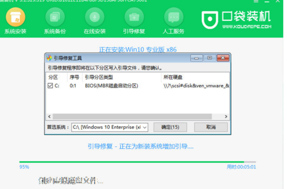 4、出現引導界面,在C盤前打勾后,點擊確定,提示系統安裝完畢后,點擊立即重啟,進入桌面,完成。