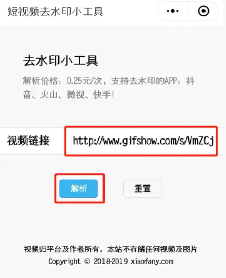 6. 進入小程序,粘貼鏈接,點擊“解析”即可