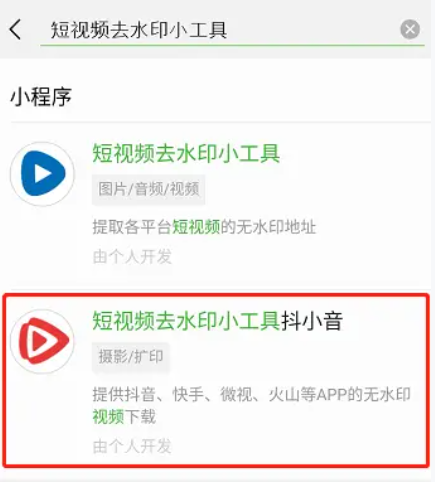 5. 點擊搜索,輸入“短視頻去水印小工具”