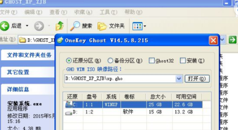 2、打開解壓后的文件夾,擇映像路徑后選擇安裝xp系統的位置為c盤。