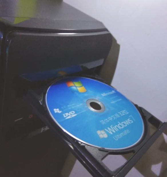 1.首先我們將光盤取出,放入我們的電腦光驅之中,此時電腦就會自動重啟。