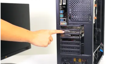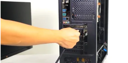4、此時調整顯示器的數據線與顯卡正確連接。