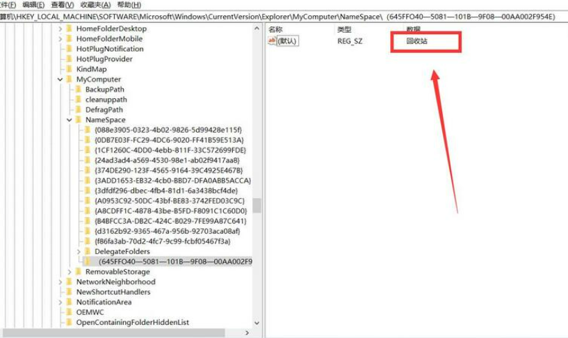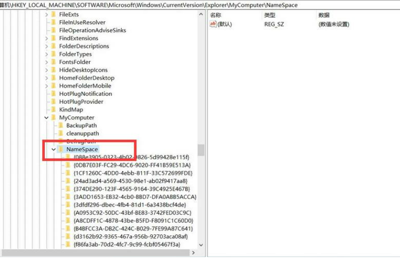 2、打開注冊表編輯器后,按照路徑找到“NameSpace”文件夾。