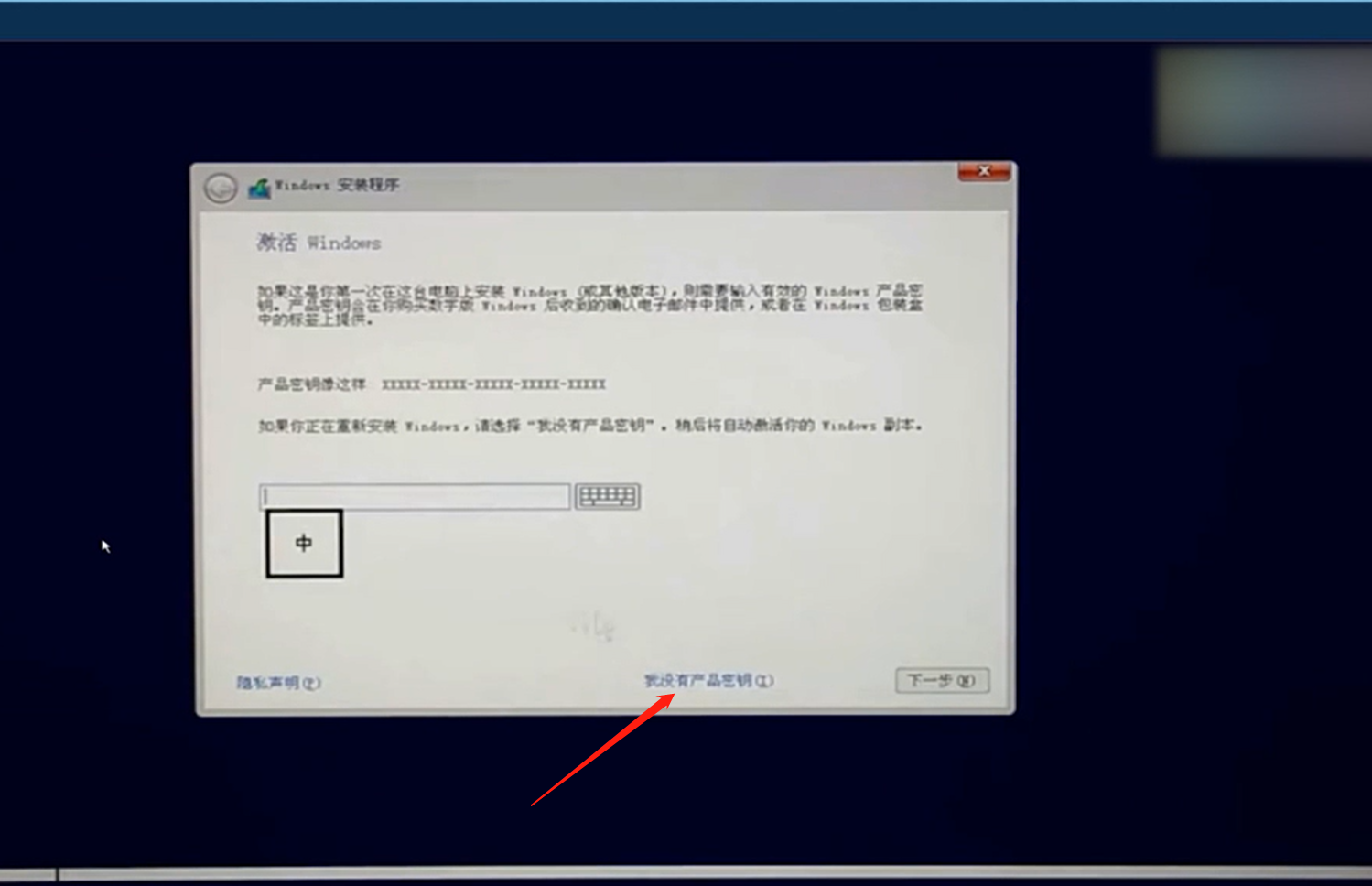 2.在網上下載一個win10系統,點開后點擊“我沒有產品密鑰”。