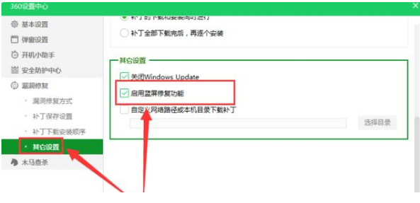 3、點擊其他設置,點擊其他設置中勾選【啟用藍屏修復功能】即可,當電腦出現藍屏的現象時,重啟電腦,此時藍屏會提示進行修復就可以啦。