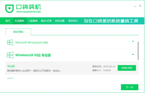 1、下載安裝并運行口袋裝機的系統重裝軟件。