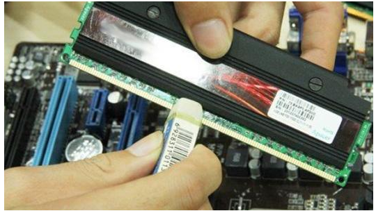 4.不行的話我們打開主機拔插內存條,用橡皮擦擦內存條,然后再把它插回去或更換內存插槽。