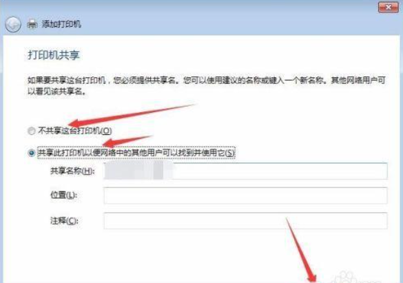 8、等待安裝驅動程序完成,并設置是否需要共享此打印機并點擊下一步,如下圖所示。