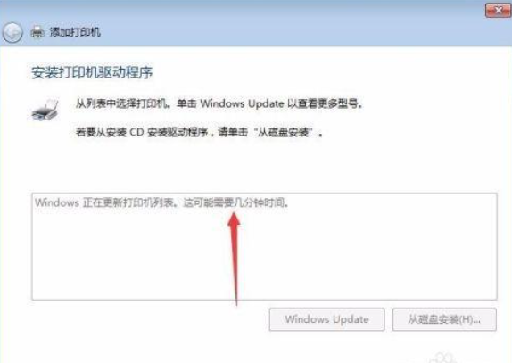 5、在當前窗口中如果沒有我們想要的驅動型號就點擊windows update進行更新,大概需要幾分鐘時間,如下圖所示。