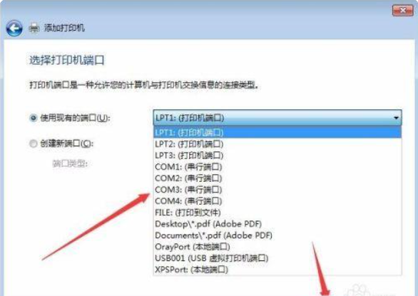 4、選擇端口類型中選擇對應端口,這個大家基本都不陌生,usb口就選擇usb,串口就選擇com,針式就選擇lpt,并點擊下一步,如下圖所示。