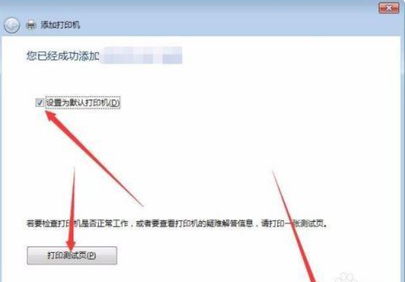 9、添加成功后設置是否勾選為默認打印機,下方可打印測試頁進行測試聯通問題,并點擊完成。