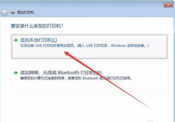 3、在彈出窗口中選擇添加本地打印機并點擊即可,如下圖所示。