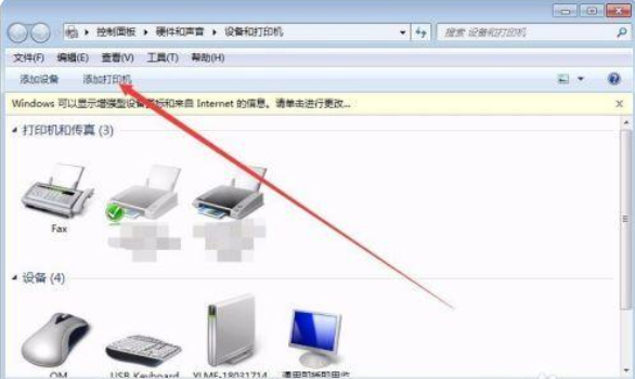 2、打開設備和打印機后,其中選擇添加打印機并點擊,如下圖所示。