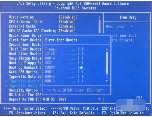 5、看到那個圈圈住的地方時按回車進入,選擇下圖所示,按光標選擇CDROM,按回車確認。