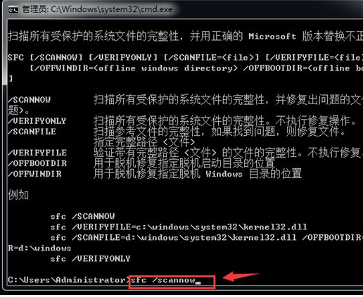 3、我們首先輸入sfc/?命令,按回車鍵。