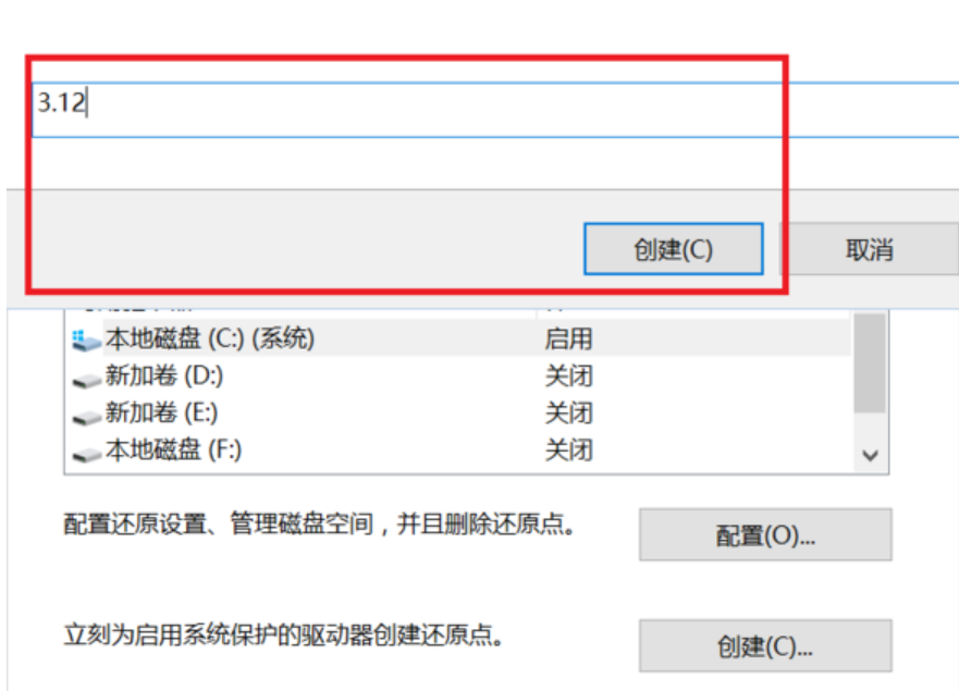 6、創建還原點,鍵入可以幫助你識別還原點的描述。點擊“創建”即可。