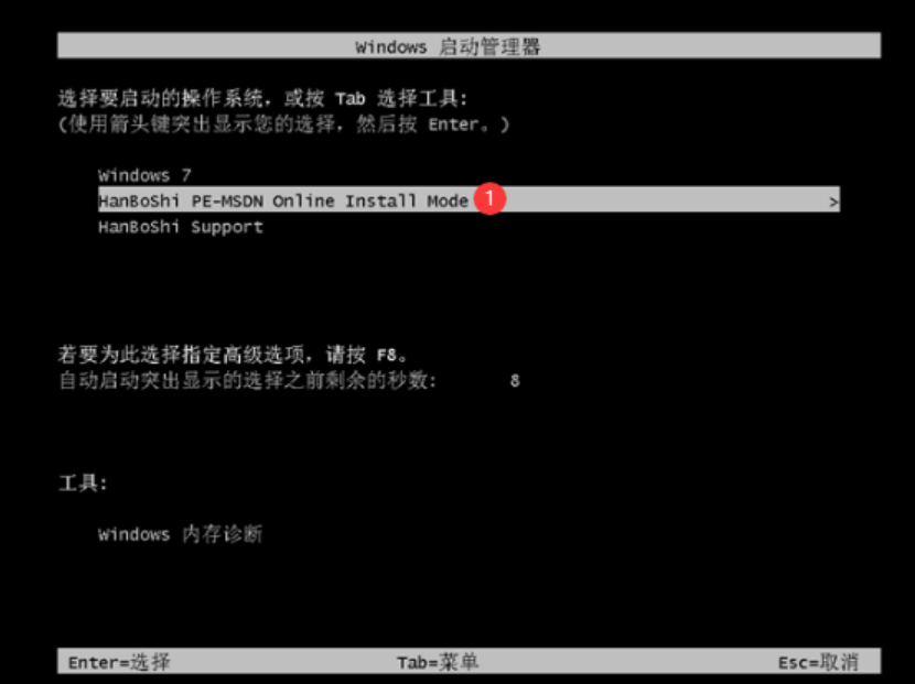 4、待系統下載完畢,重啟電腦,會默認進入韓博士PE模式自動安裝電腦系統。