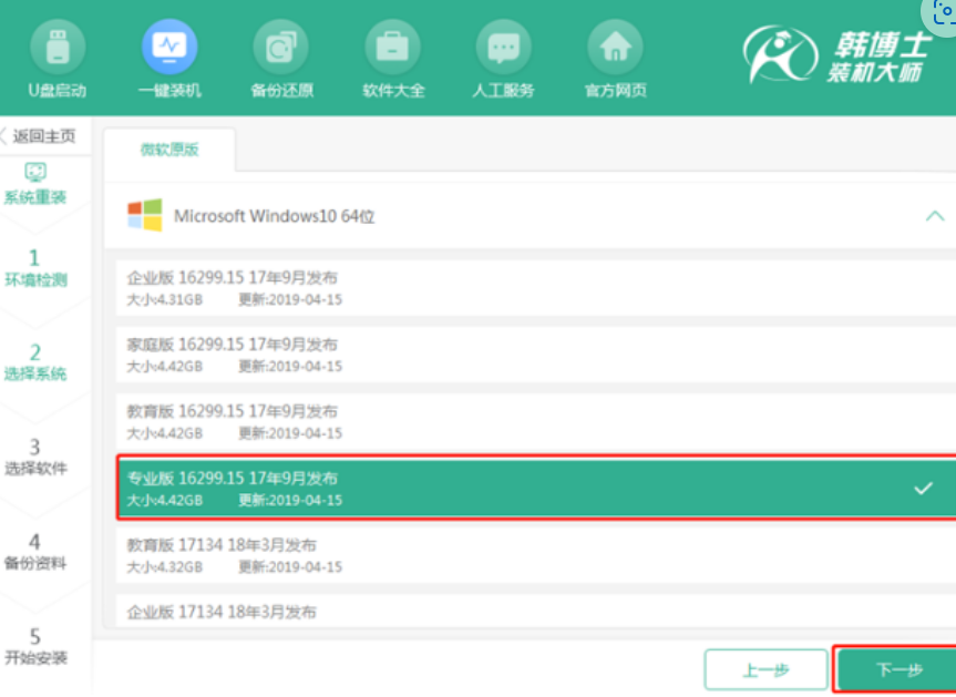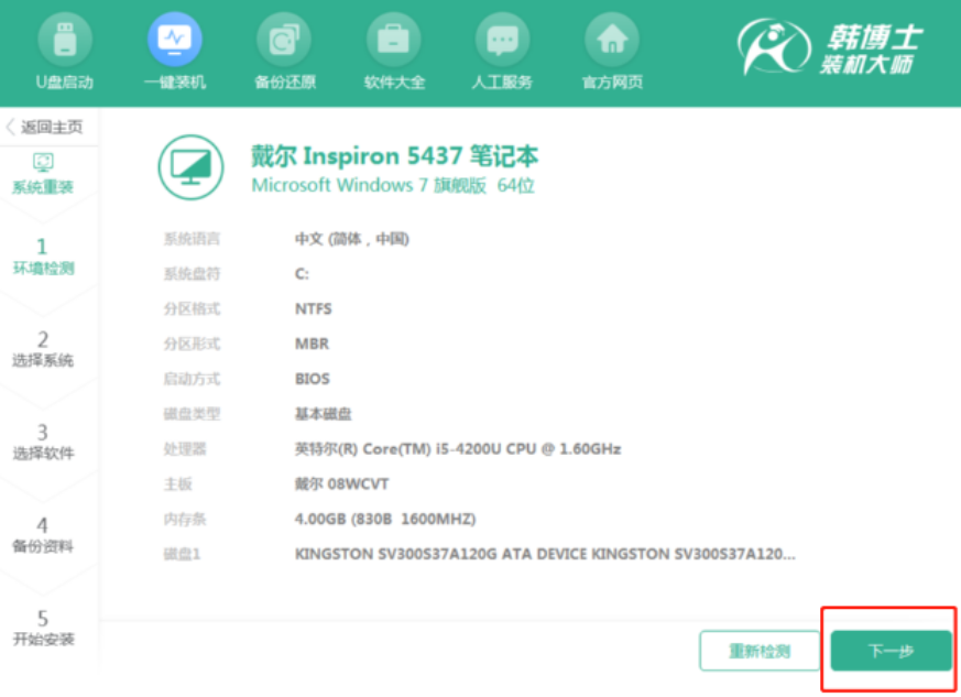 下載打開韓博士一鍵重裝系統軟件,然后根據步驟操作即可完成。
