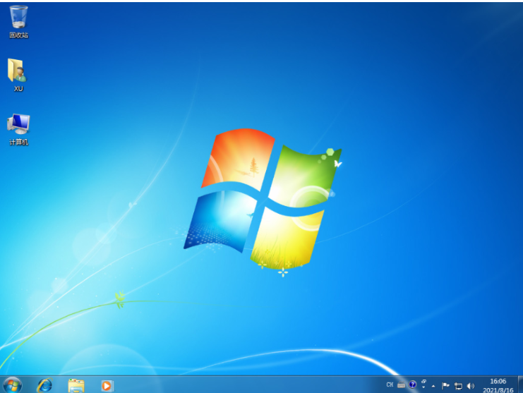 7、安裝完成后點擊重啟電腦,進入到新的系統桌面即說明筆記本電腦裝系統win7成功。