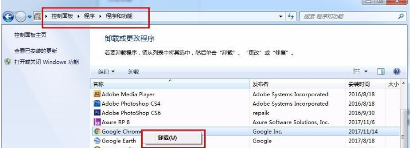 6.然后我們說下第一步暫時不動的Program Files或者Program Files (x86),這兩個里是程序的安裝路徑,如果要刪除里面的某個程序的文件,那么就需要用到卸載程序的功能。