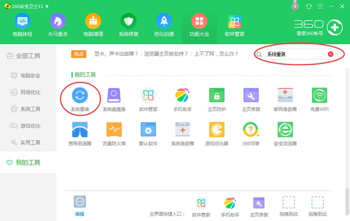360如何重裝系統?360安全衛士是可以進行系統的重新安裝的,但是這個是有條件的,首先你的電腦可以進入原來的系統,二是必須在聯網的情況下進行。滿足這樣的條件就可以使用360進行系統的安裝了,安裝的系統和你當前的系統是同一版本。360重裝系統具體方法如下