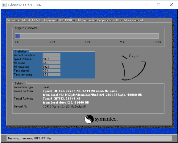 6、進入之后,系統將會自動進行備份還原,耐心等待完成。