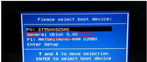 2、將U盤插入需格式化重裝系統的電腦上,重啟后不停按F12或F11或Esc等快捷鍵調出啟動菜單,選擇U盤選項回車,比如General UDisk 5.00,不支持這些啟動鍵的電腦查看第二點設置U盤啟動方法;