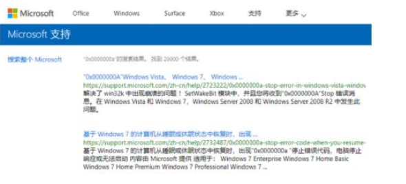 4、在代碼查詢頁面點擊搜索,會跳轉到微軟的官網,可以在微軟官網內查找相關的藍屏信息。