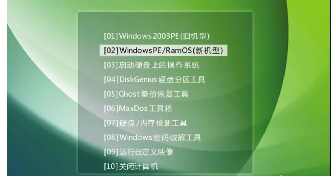 2、制作完成后將其插入重裝的電腦上,重啟按F12、F11、Esc選擇U盤啟動。進入到U盤主菜單,選擇【01】或【02】進入PE系統。