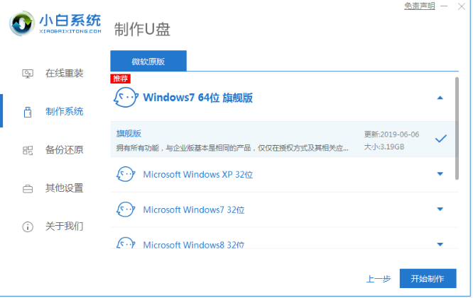 2、選擇我們需要重裝的系統,點擊開始制作。