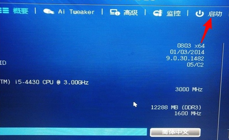 2、直到進入bios界面,這個時候就可以看到界面是以圖形圖像的模式呈現。點擊下方的“高級模式”。