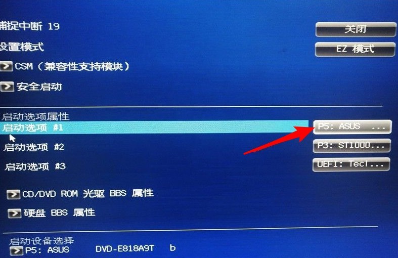 5、在該頁面中,可以看到“啟動選項屬性”,在這里我們就可以設置啟動項了,點擊第一啟動選項,然后彈出來一個“啟動選項”窗口,選擇“UEFI”選項即可。