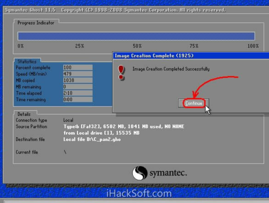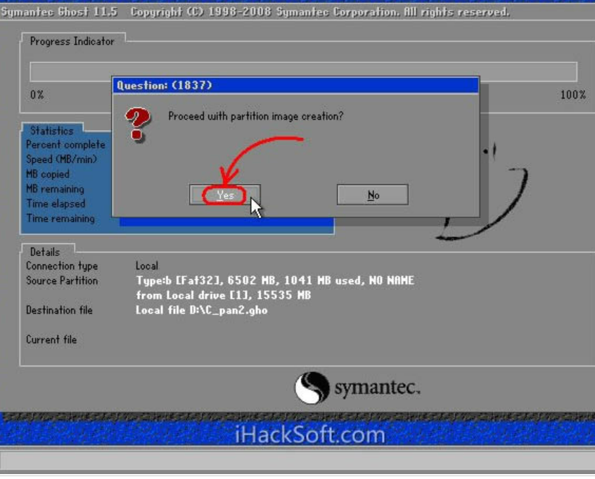 6.出現確認建立鏡像文件窗口,單擊“Yes”開始備份。