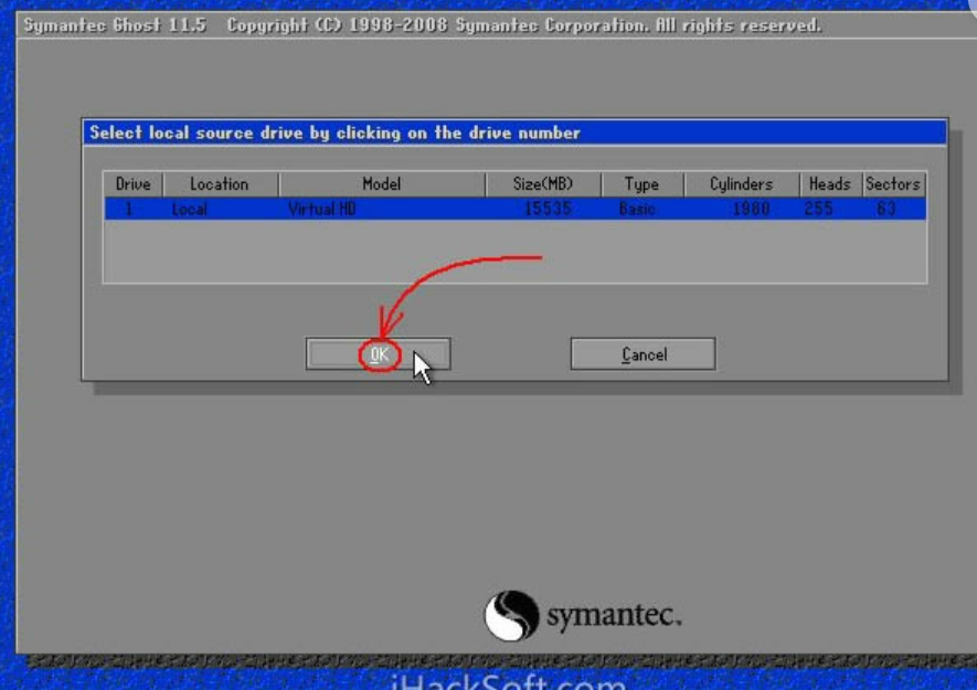 2、出現選擇本地硬盤窗口,單擊要備份的分區所在硬盤,再單擊“OK”。