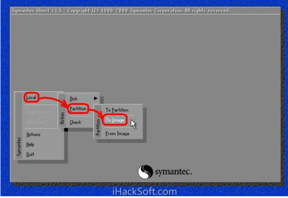 1.運行Ghost后,單擊“OK”選項,再依次單擊“Local”→“Partition”→“To Image”。