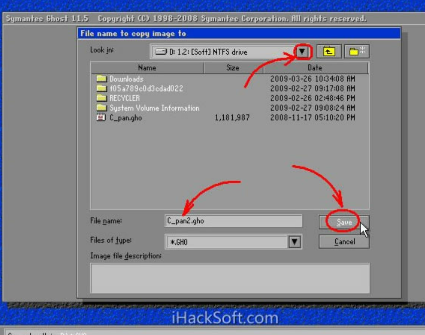 4.此時彈出存儲位置對話框,單擊黑三角按鈕,在下拉列表中選擇要存儲鏡像文件的分區進入相應的文件在“File name處輸入鏡像文件的文件名然后單擊“Save”進行操作。