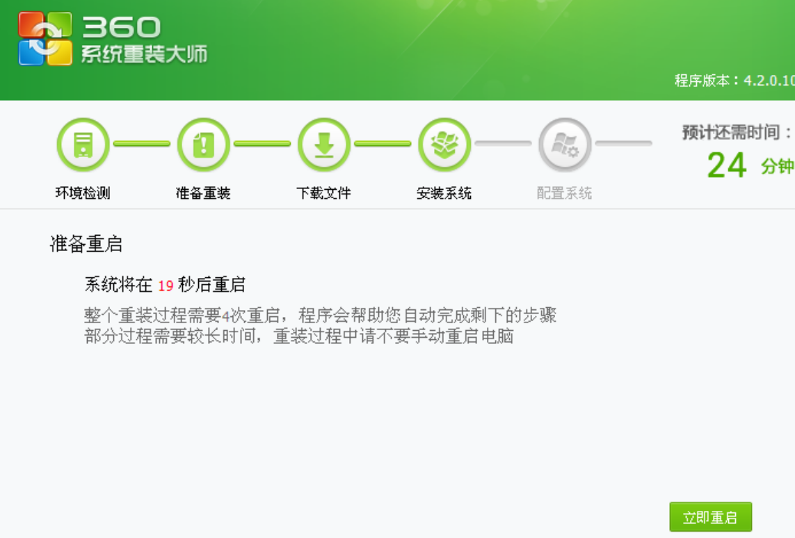 7.單擊立即重啟后,等待系統安裝完成即可。