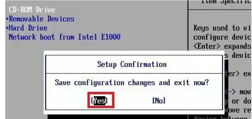 4、按“F10”,選擇“Yes”,按下“回車鍵”,計算機將重啟。