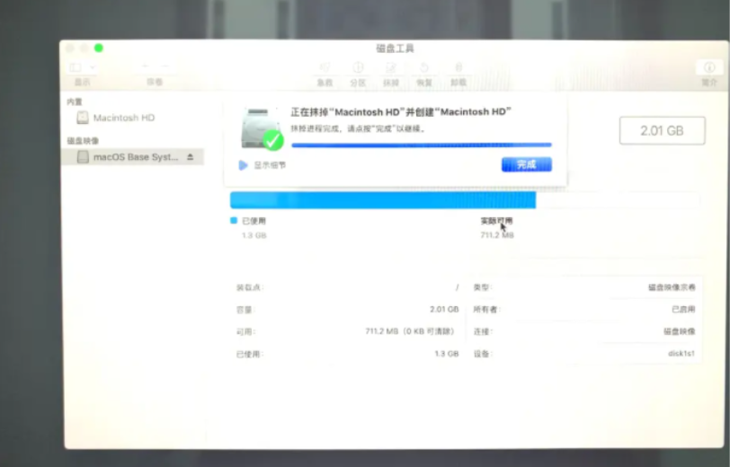 5、等待系統正在抹掉舊的磁盤,并創建新的磁盤。需要花費些時間,提示抹點進程完成后,我們點擊完成。